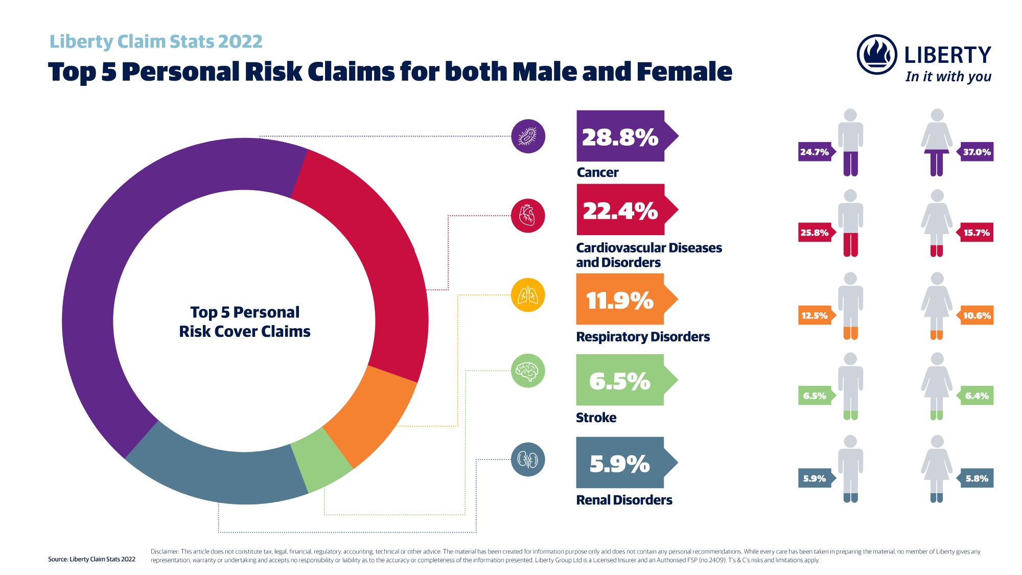 Top 5 Personal Risk Claims for both Male and Female